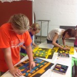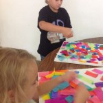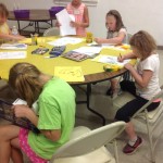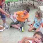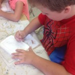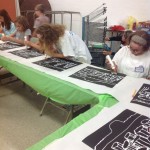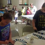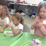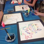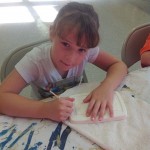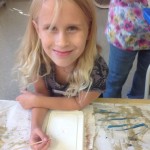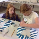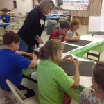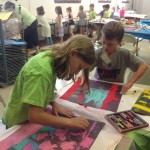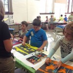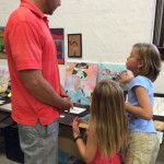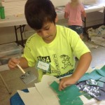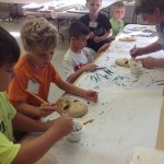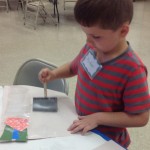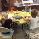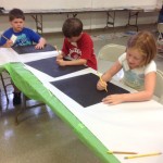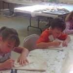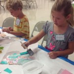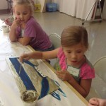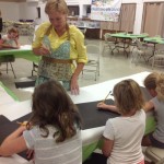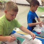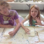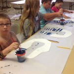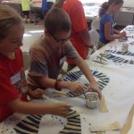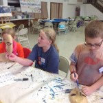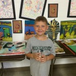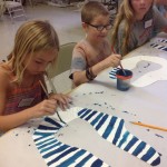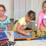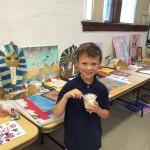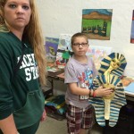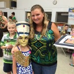 Thirty six energetic art campers ages 6-11 met each morning August 10-14 at the Griswald for the Allegan Area Arts Council Art Camp. Learning and art went hand in hand as the artists learned about deserts around the world. Would you like to be a king at age 9? King Tut masks were a big hit…and Queen Nefertiti was also in the house! Great roadrunner sculptures from the desert of the southwest were adorned with beautiful colored feathers. Canvases of animals of the outback in Australia were show pieces! There were also dot paintings, sand art, hieroglyphics tablets with a gold glaze and the southwest landscape in chalk! It was a busy artistic week culminated with an art extravaganza for family and friends! Next years AAAC Art Camp in Allegan will take place August 8-12! Join in the fun!