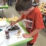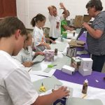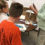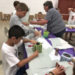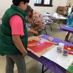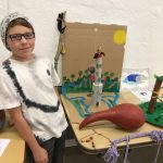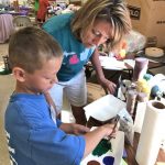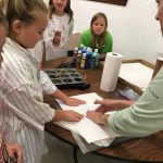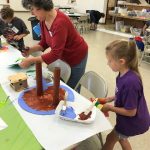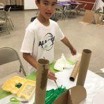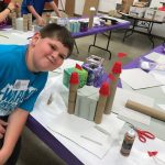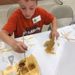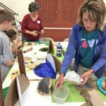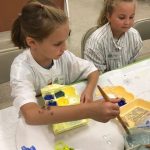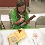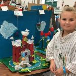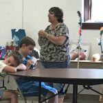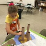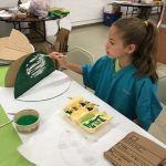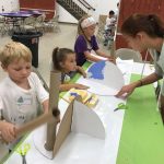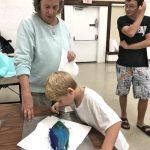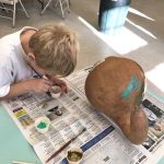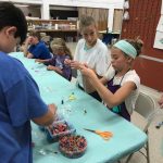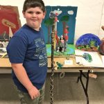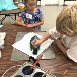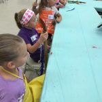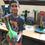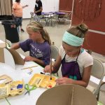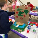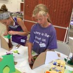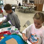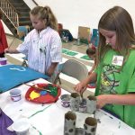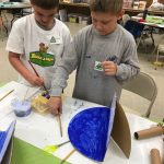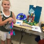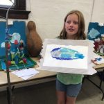 Save The Earth was the theme for the Allegan Area Arts Council Art Camp this year! The campers talked about all the ways they could help our environment by recycling and keeping our earth safe and clean for people and animals! The twenty seven campers and two extraordinary older helpers used many recycled supplies and items given to the Arts Council with which they were able to create and design. They created “Dream Locations”, Medieval Castles, necklaces with crackled marbles, plastic sun catchers, “Tommy and Timothy” tilapia prints with corrugated cardboard frames, large gourd creations including bird houses and musical instruments, artistic walking sticks and a coat of arms…whew…it was a very busy and creative four days! The campers had an art exhibit on their last day and displayed their artist treasures for their families! It was a magnificent week for campers and teachers alike! Marsha Behm was coordinator with teachers Paula Chalupa, Deb Hilsbos, Judi McCall, Judi Miller-Morris, Cindy Thiele and Melissa Warner! We would like to thank everyone for a grand experience and thank the City of Allegan for the use of the perfect space to create at the Griswold! Join us next year!